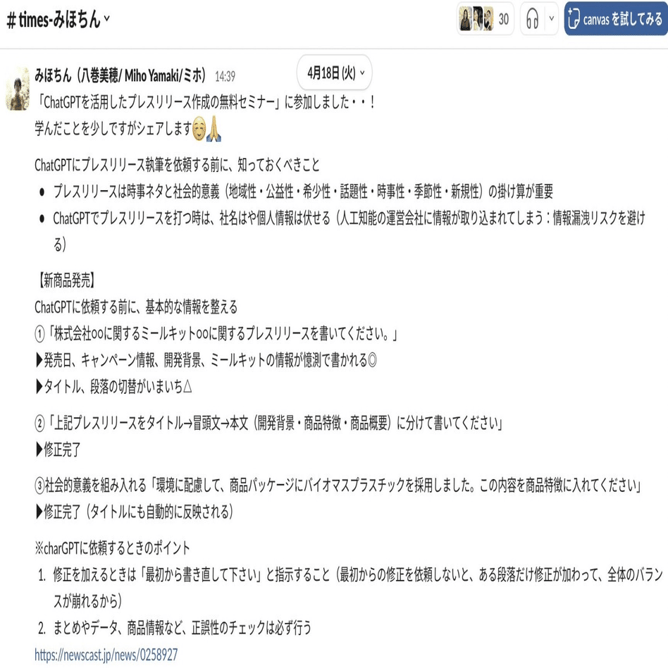 この子いつも全社シェアしてくれるから、社内広報視点があるな