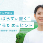 今回お話を伺ったのは、「書けない」に伴走する個人のための編集者『パーソナル編集者®』として活動する渋谷祥平さん。自身も書くことに悩んできたと言う渋谷さんが、書く経験を積み重ねるなかで見つけた“がんばらずに書き続ける”ためのヒントを教えてくれました。